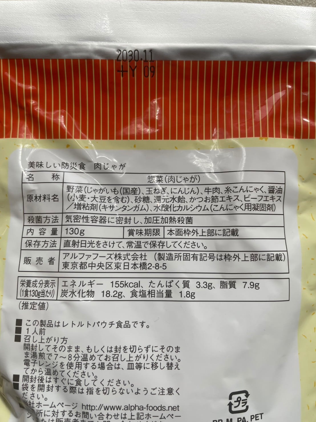 ⑥美味しい防災食 肉じゃが★アレルゲン小麦はしょうゆ由来
